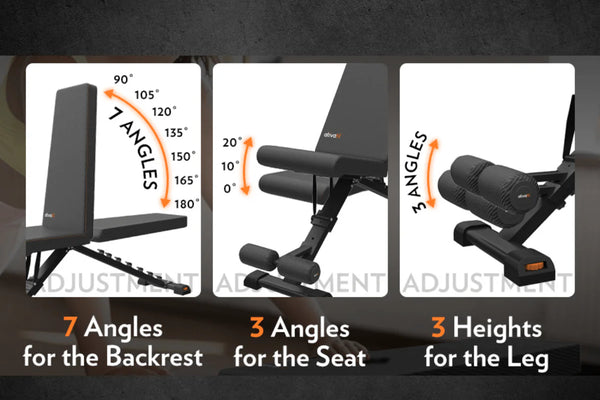 7 Backrest Positions and 3 Seat Positions for full exercise flexibility