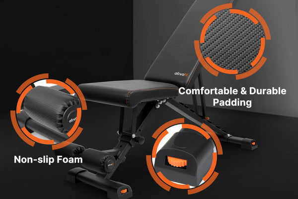A: The Ativafit Foldable Weight Bench can safely support up to 800 lb when seated and 500 lb during exercise, ensuring stability during even the most intense workouts.