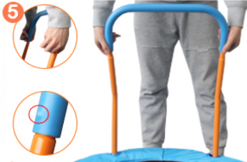 - Tear-resistant foam handle - Safe, chemically tested materials- Handlebar locked with the trampoline disc for stability and larger jumping area- Foldable for easy storage