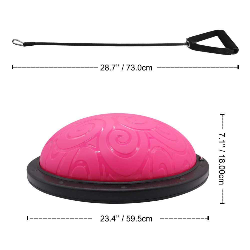 • EASY TO INSTALLATION ADN SPACE SAVE - Package comes with 1 x balance half ball(23.4'' W x 7.1''H), 2 x resistance bands, 1 x Air Pump, and 1 x Valve Plug. It inflates within a minute and deflates in seconds. It is perfect for versatile occasions such as home, office, and gym.